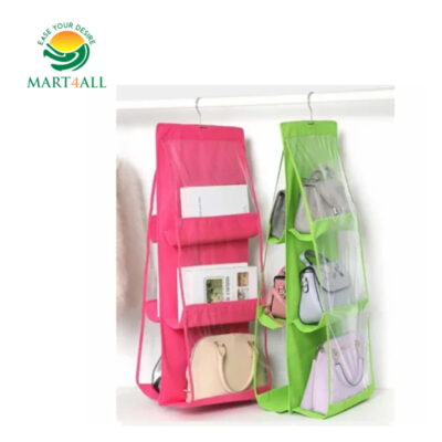 Double Sided Transparent 6 Pocket Foldable Hanging Bag Organizer